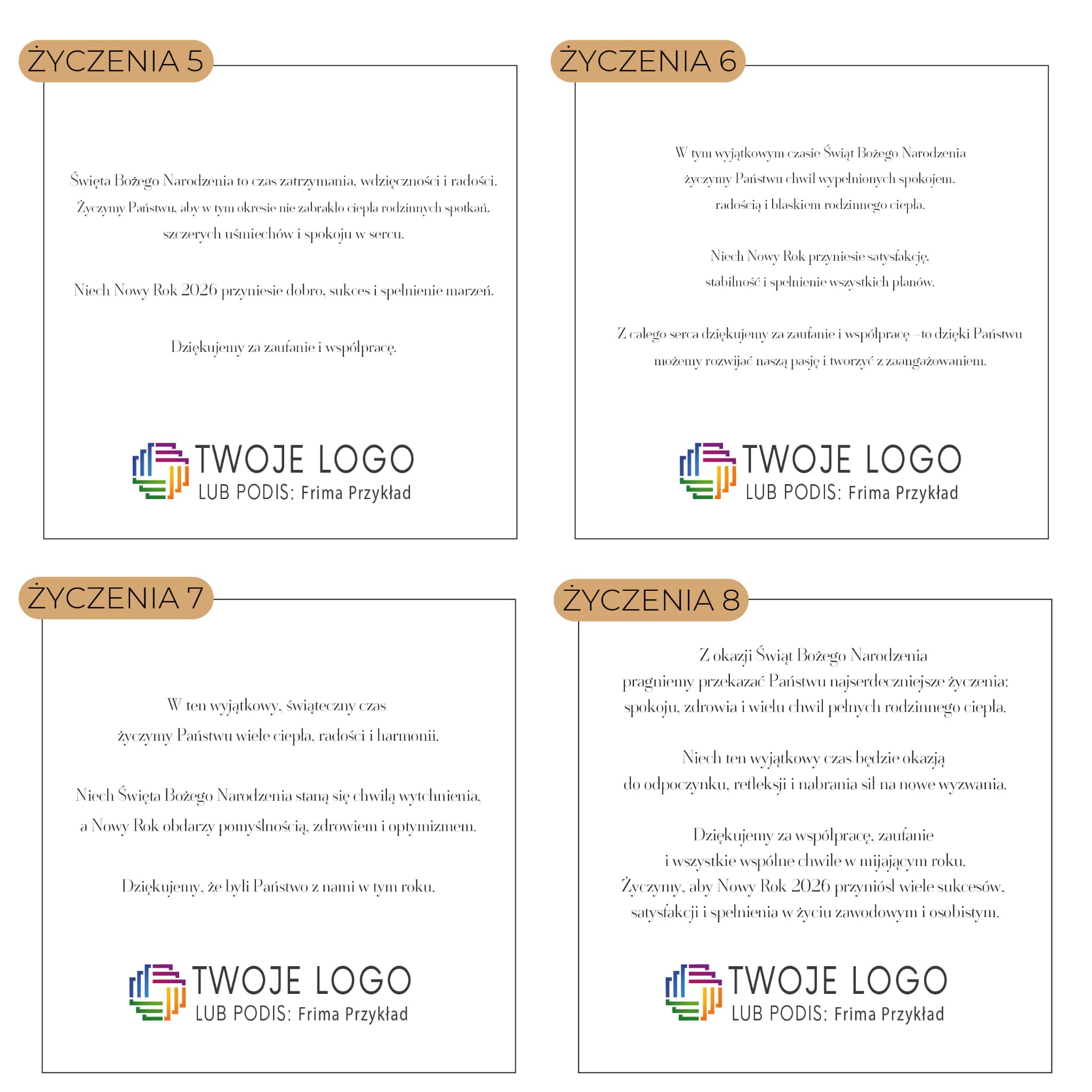 Idealna jako kartka firmowa lub indywidualna – istnieje możliwość dodania logo i personalizowanych życzeń. To elegancki sposób, by złożyć świąteczne życzenia w wyjątkowej oprawie i budować pozytywne relacje z klientami, partnerami i współpracownikami.