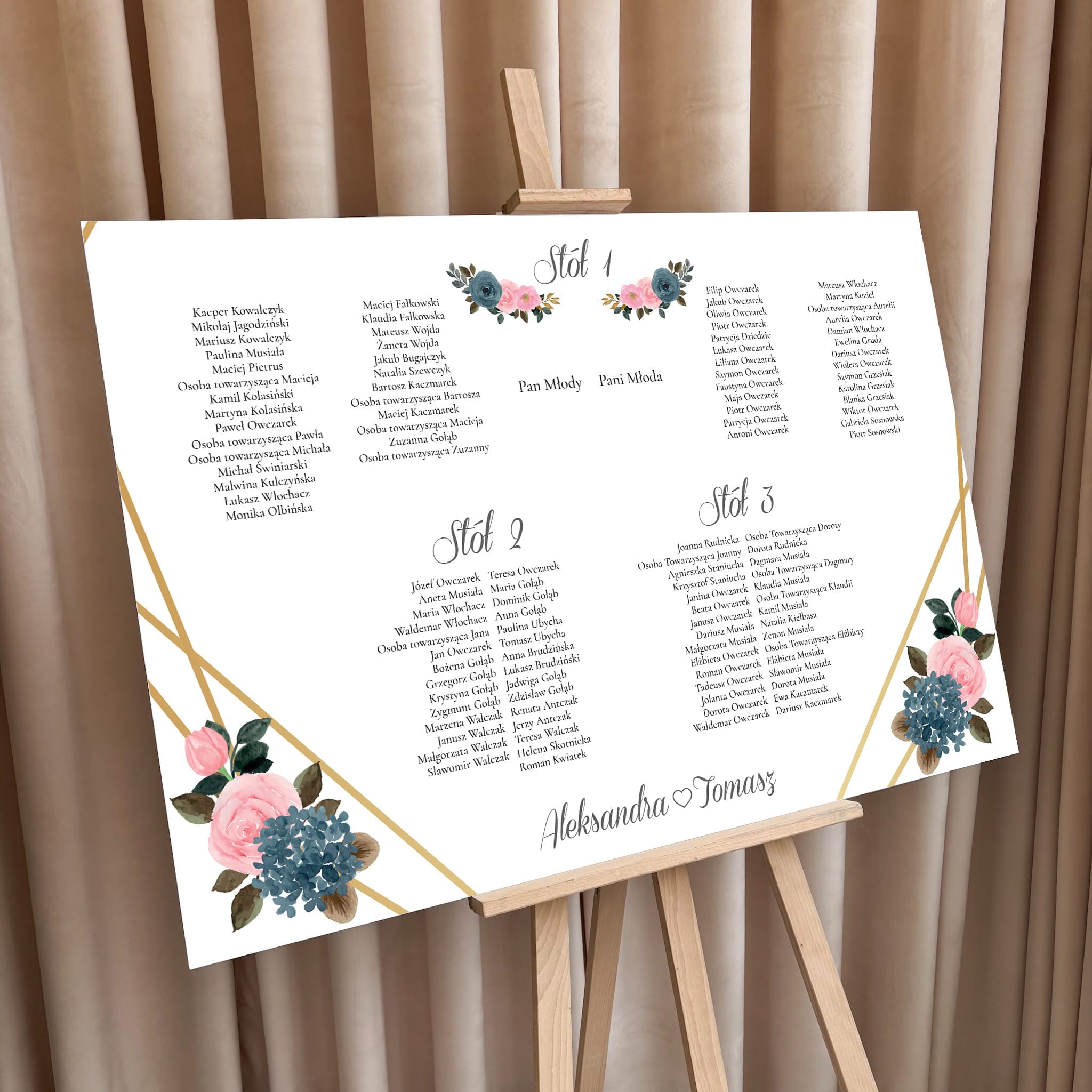 Imiona Pary Młodej + układ gości i stołów