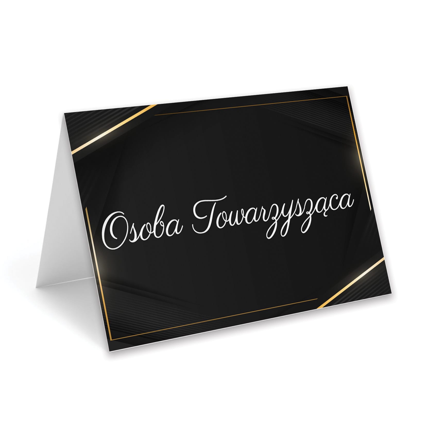 Stylowa winietka utrzymana w eleganckiej czerni ze złotymi liniami i subtelnymi świetlistymi akcentami to idealny dodatek na wyjątkowe uroczystości pełne klasy. Połączenie ciemnego, głębokiego tła z delikatną, ozdobną czcionką tworzy efekt ekskluzywnego, luksusowego designu w stylu glamour i black-tie.
