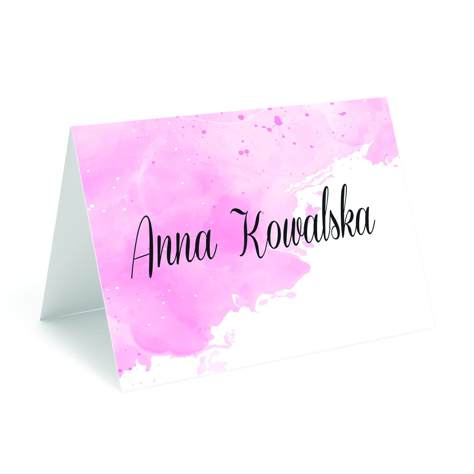 Delikatna winietka z artystycznym, akwarelowym tłem w odcieniach pastelowego różu to idealny wybór dla par, które marzą o subtelnej, romantycznej i dziewczęcej estetyce na swoim przyjęciu. Lekka kompozycja barw przypomina rozmytą akwarelę z drobnymi rozpryskami farby, nadając winietce świeżości i nowoczesnego uroku.