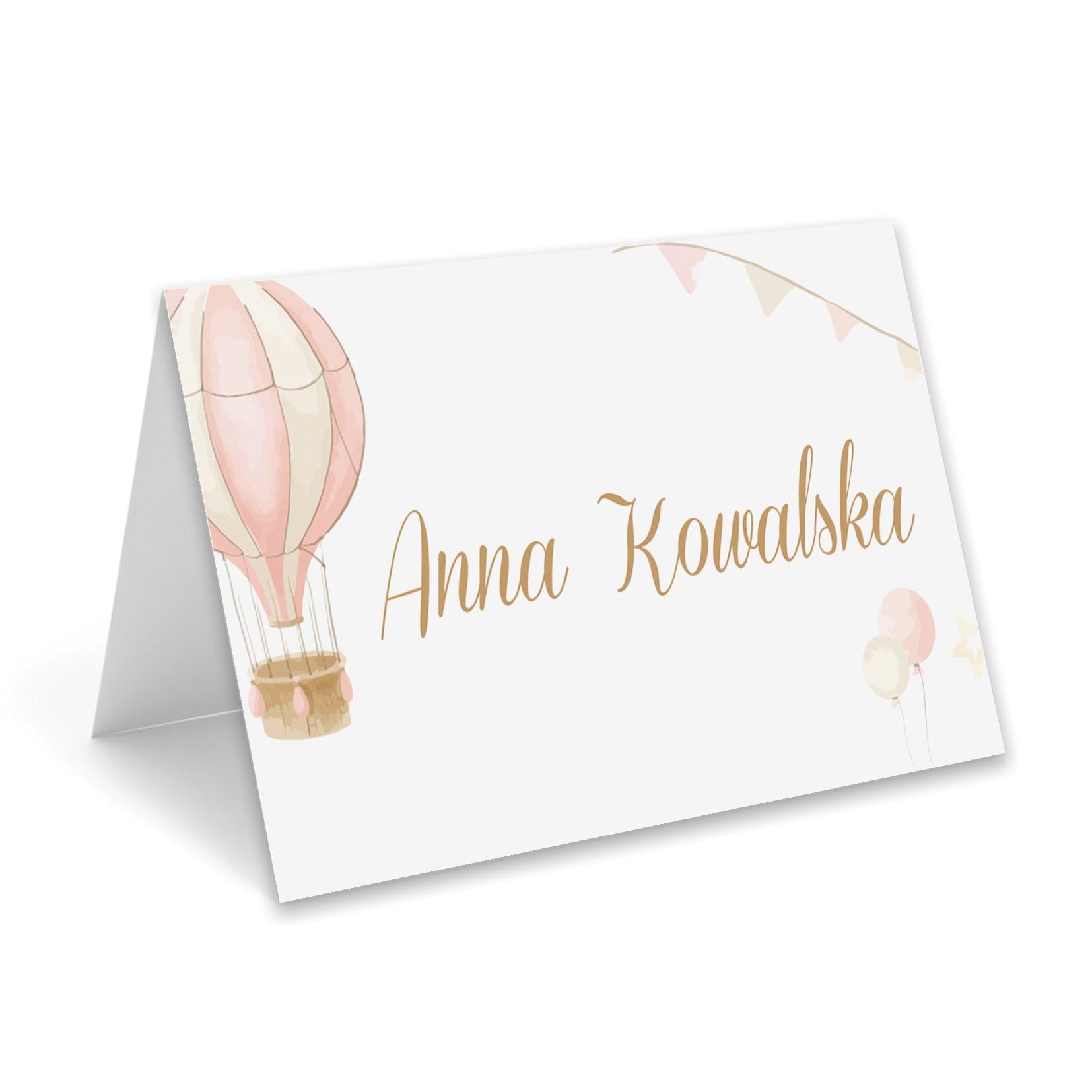 Urocza winietka z motywem balonu w pastelowych kolorach. Idealna na chrzest, roczek lub urodziny dziewczynki. Personalizowana, styl boho.