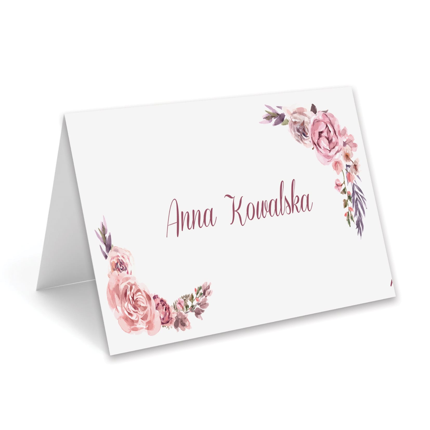 Każda winietka jest personalizowana – możesz dodać imię i nazwisko gościa, np. Anna Kowalska, co pozwala zachować spójność aranżacji i nadać jej elegancki charakter.