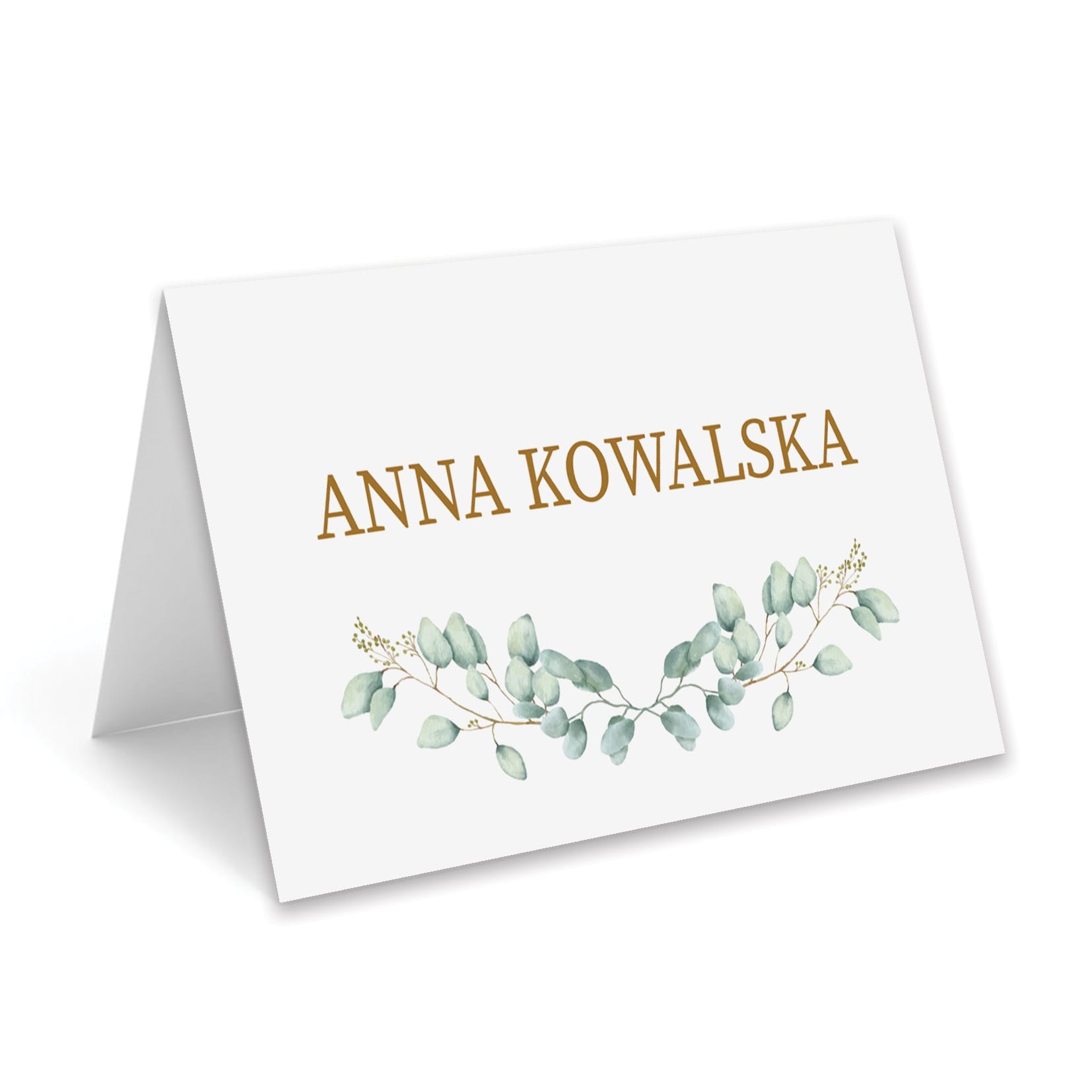 Subtelna i stylowa winietka na stół z motywem eukaliptusa to doskonały dodatek do aranżacji stołu na wesele, komunię, chrzest lub uroczysty obiad rodzinny.