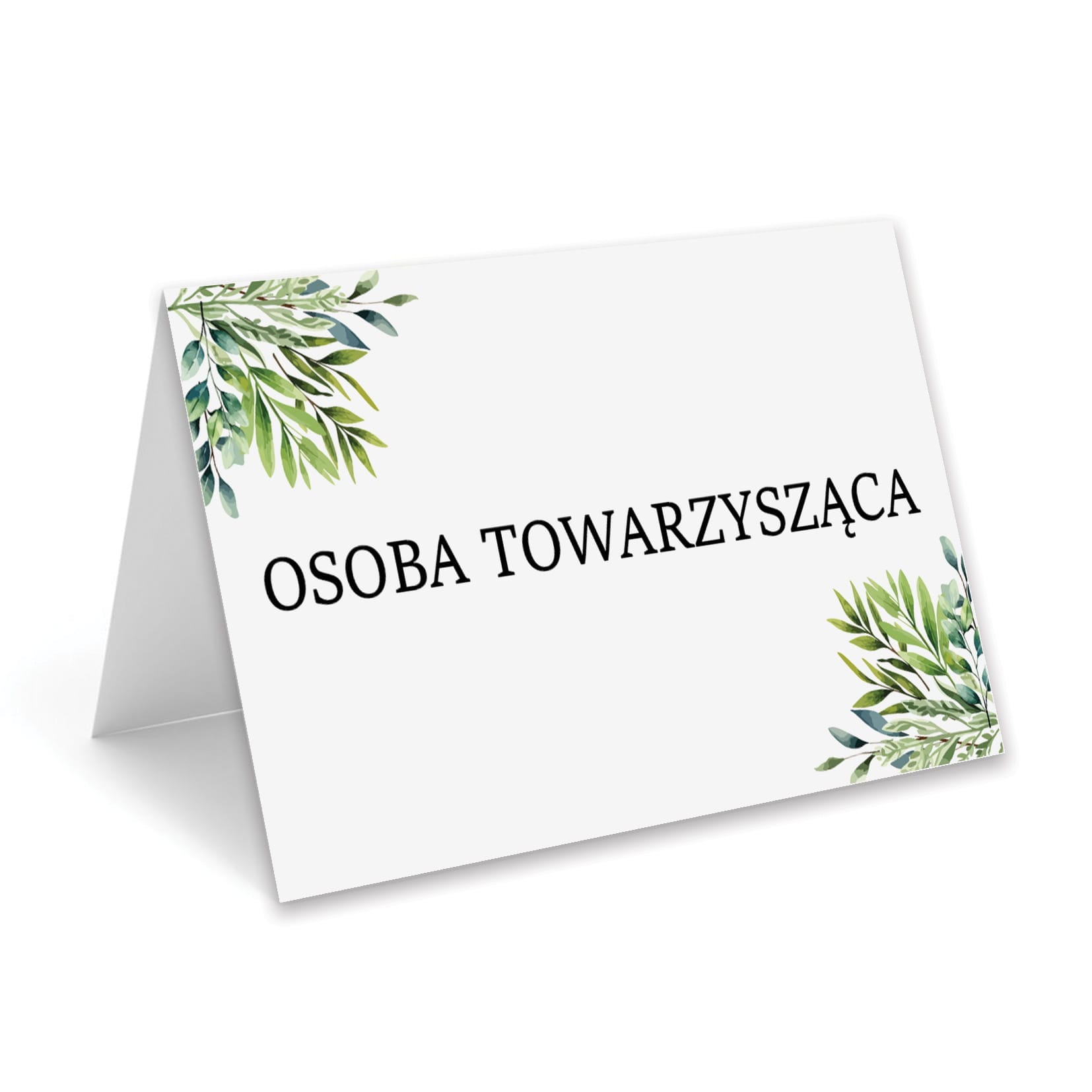 Minimalistyczna winietka ślubna z motywem zielonych liści to elegancki sposób na oznaczenie miejsc gości podczas przyjęcia. Naturalna, botaniczna grafika w odcieniach zieleni doskonale wpisuje się w styl greenery, boho i rustykalny, dodając aranżacji stołu lekkości i świeżości.