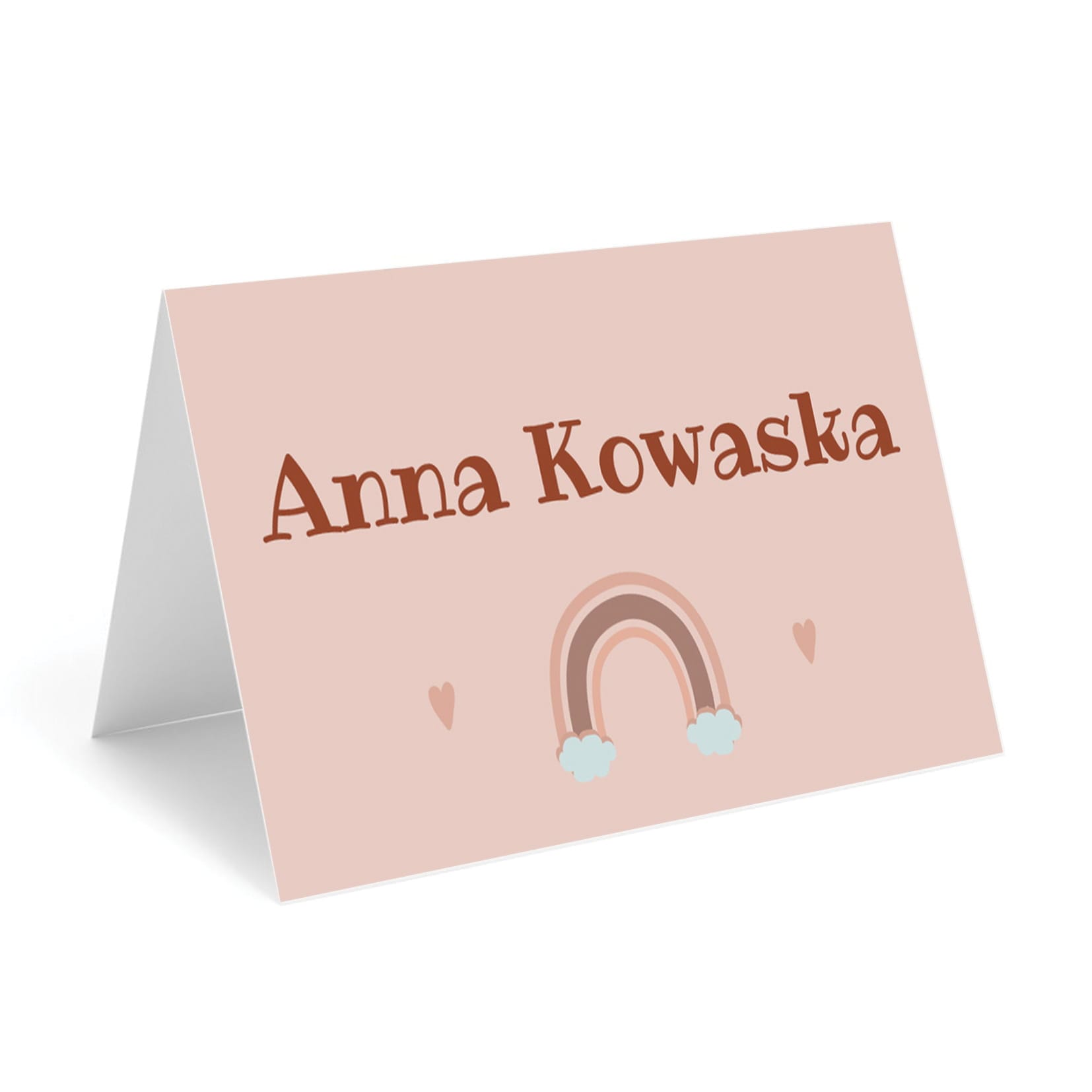 Subtelna grafika i przyjemna kolorystyka w stylu boho tworzą wyjątkowy, ciepły klimat przyjęcia. Winietki doskonale komponują się z naturalnymi dekoracjami i pastelową aranżacją stołu.