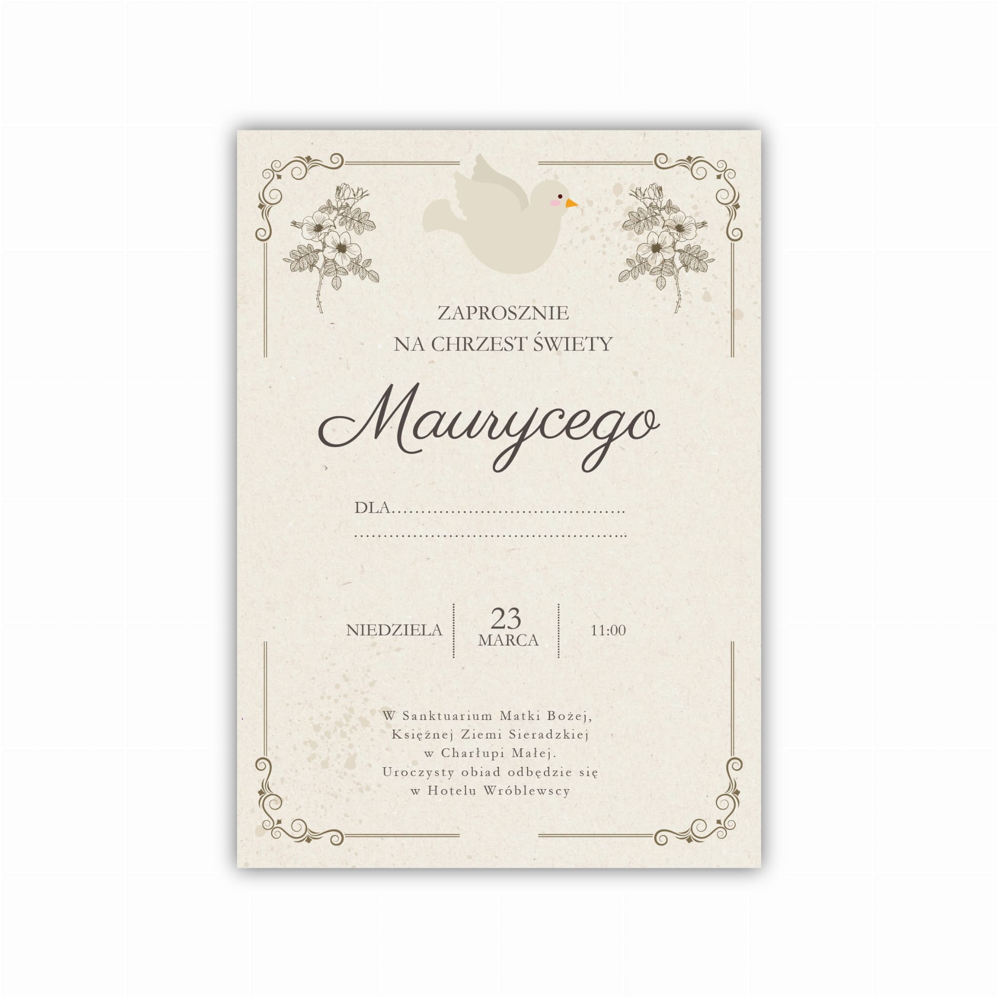 Personalizacja: imię dziecka, data, miejsce uroczystości i inne dane
