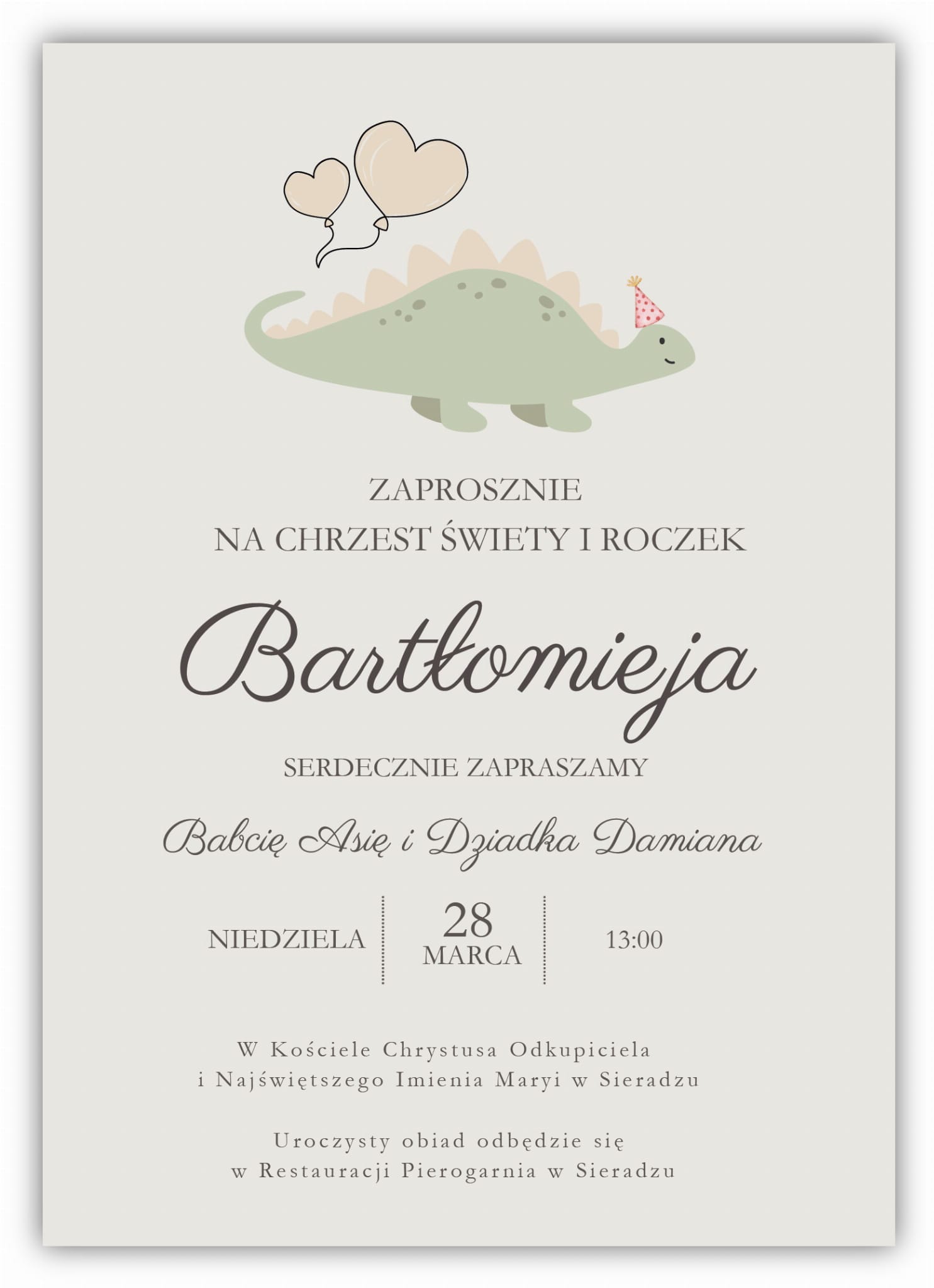 Zaproszenie na Chrzest Święty i Roczek „Dino” – Z CH-20