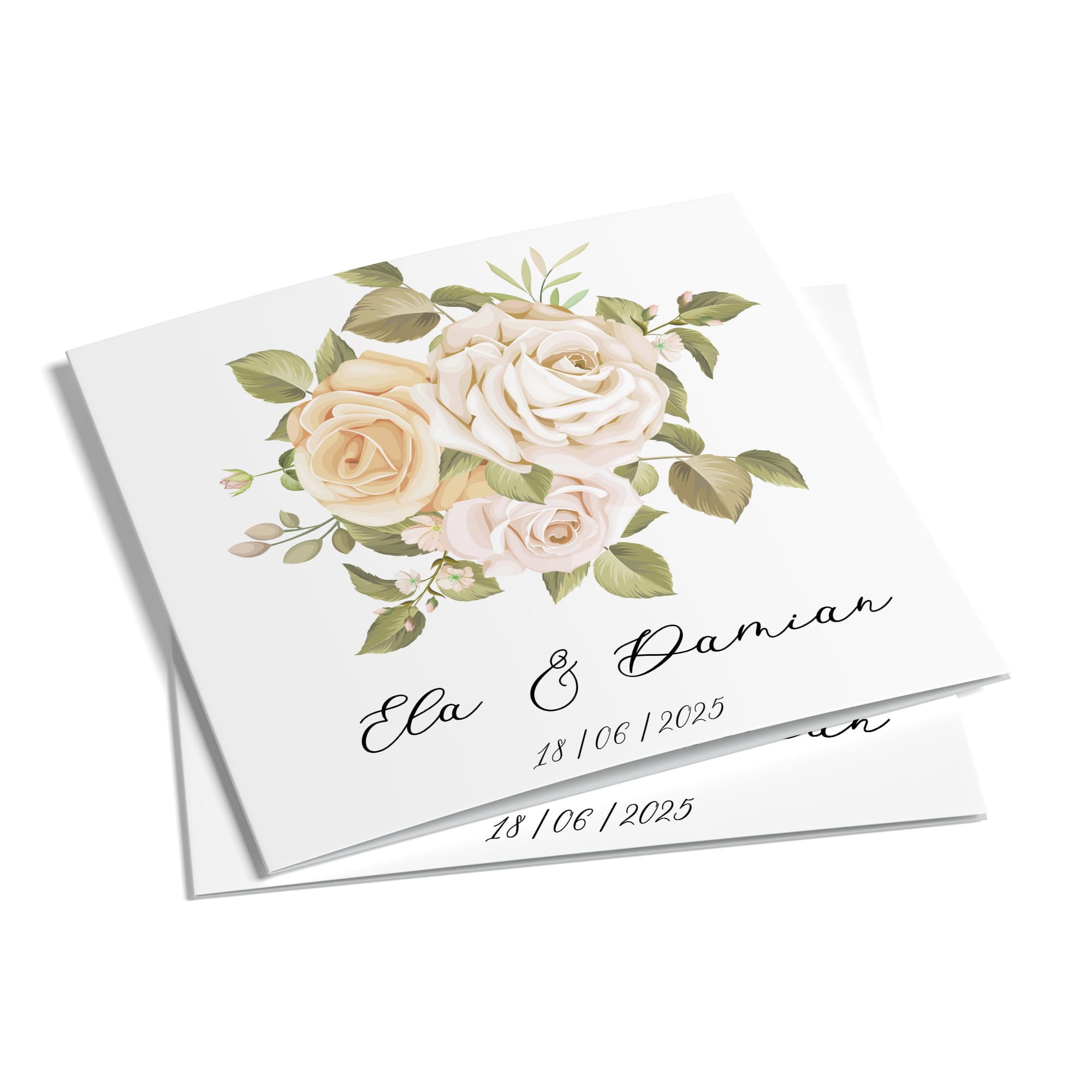 Motyw: klasyczne róże, jasna kolorystyka, elegancka typografia